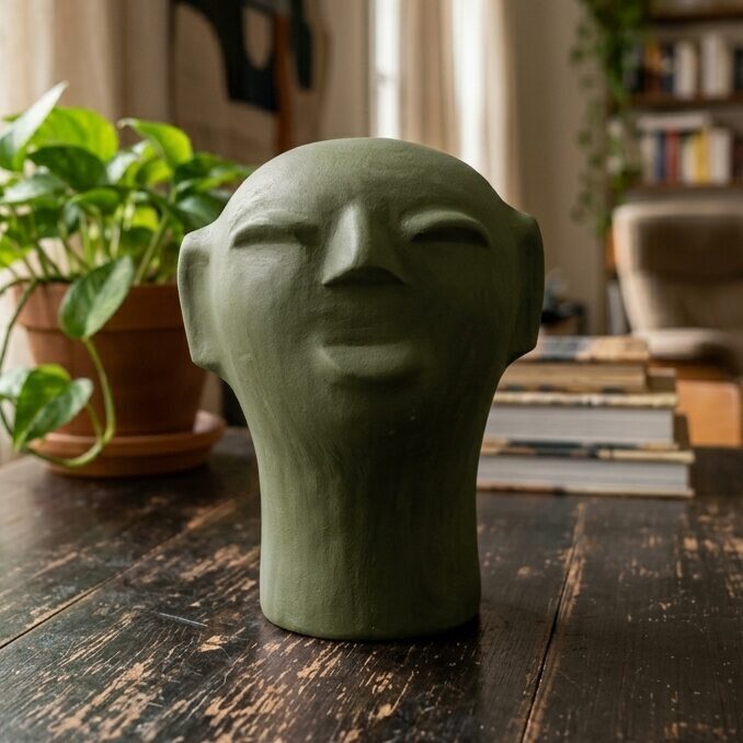 Esta cabeça de cerâmica foi pensada para se adaptar com elegância a diversos espaços: