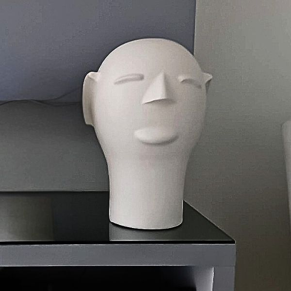 Esta cabeça de cerâmica foi pensada para se adaptar com elegância a diversos espaços: