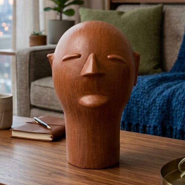 Esta cabeça de cerâmica foi pensada para se adaptar com elegância a diversos espaços:
