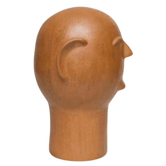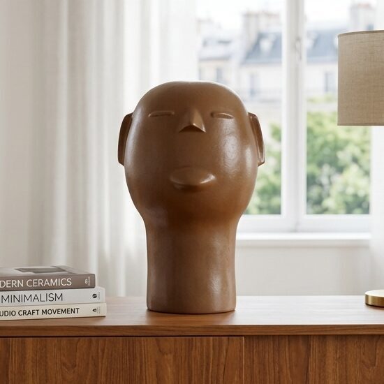 Esta cabeça de cerâmica foi pensada para se adaptar com elegância a diversos espaços: