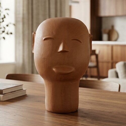 Esta cabeça de cerâmica foi pensada para se adaptar com elegância a diversos espaços: