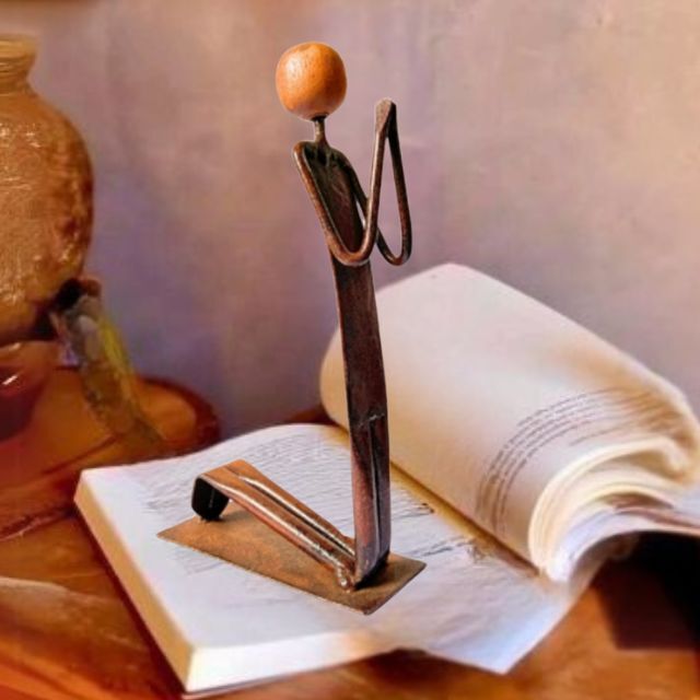 Escultura em ferro e madeira, que simboliza a oração e a fé. Uma peça única, ideal para altares, cantinhos de oração ou para trazer serenidade ao seu lar. Inspiração e devoção em forma de arte.