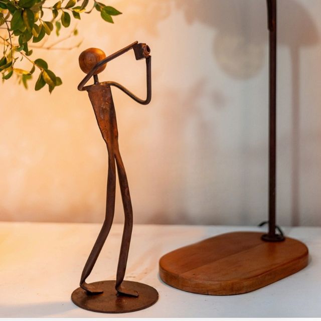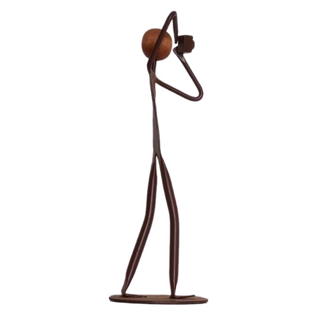 Uma homenagem à arte de capturar momentos. Essa escultura em ferro e madeira, “O Fotógrafo”, simboliza a paixão por registrar o mundo, a beleza dos detalhes e a importância de cada clique. É a peça perfeita para decorar escritórios, salas de estar ou presentear um profissional ou entusiasta da área.
