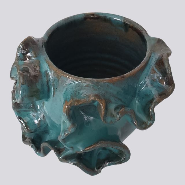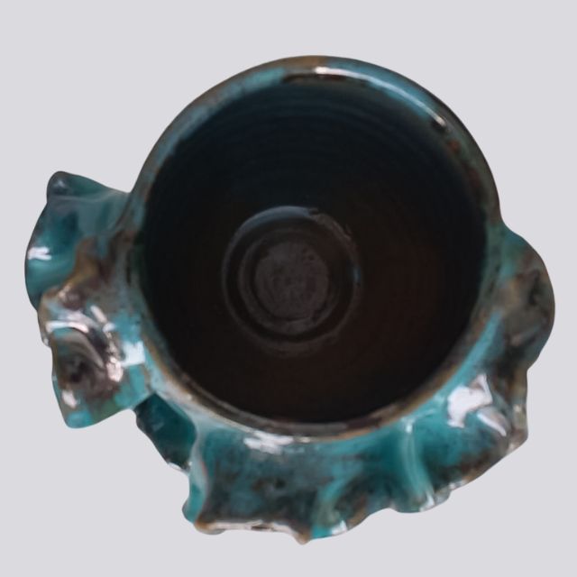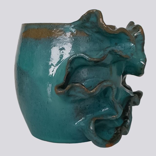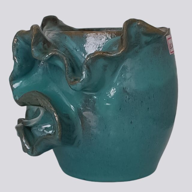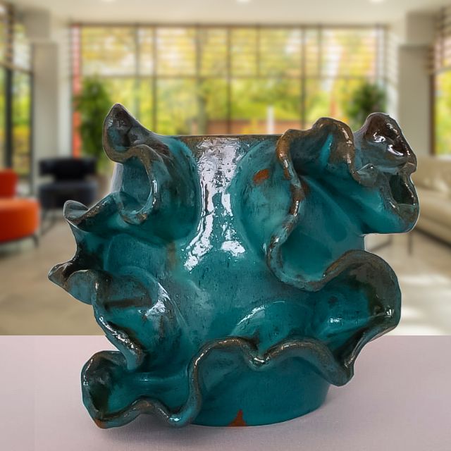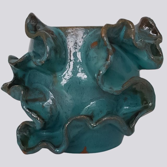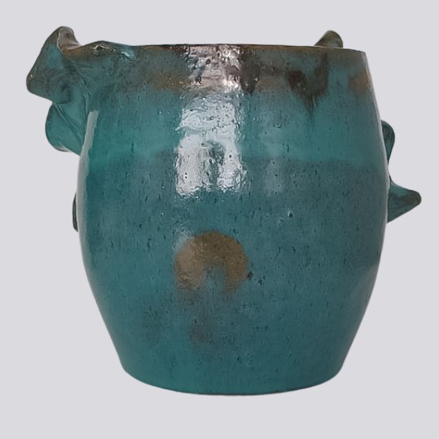 Com seus detalhes ondulados e a tonalidade profunda do esmalte, este vaso demonstra a qualidade e o cuidado do artesanato nordestino. A cerâmica vitrificada garante um acabamento de alto brilho, durabilidade superior e facilidade na limpeza.