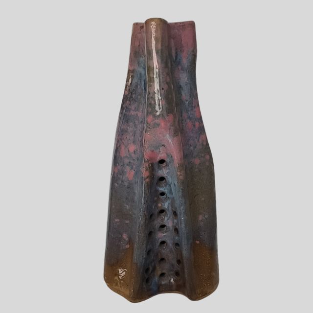 Vaso Luminária de Cerâmica Vitrificada com design escultural. Peça artesanal e versátil: pode ser usada como vaso decorativo ou como luminária, basta inserir uma vela de LED. Traz um toque artístico e aconchegante para qualquer ambiente.