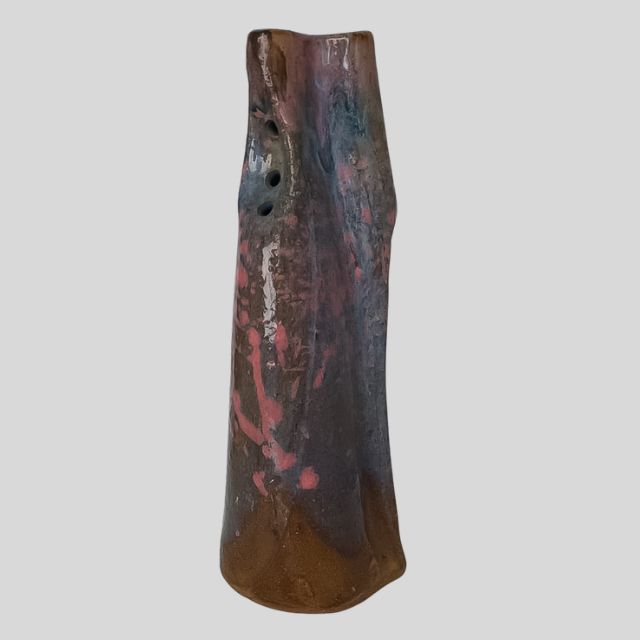 Apresentando um formato alongado e texturas únicas, este item decorativo reflete a riqueza do artesanato em cerâmica. A vitrificação garante um acabamento brilhante, durabilidade e facilidade na limpeza.