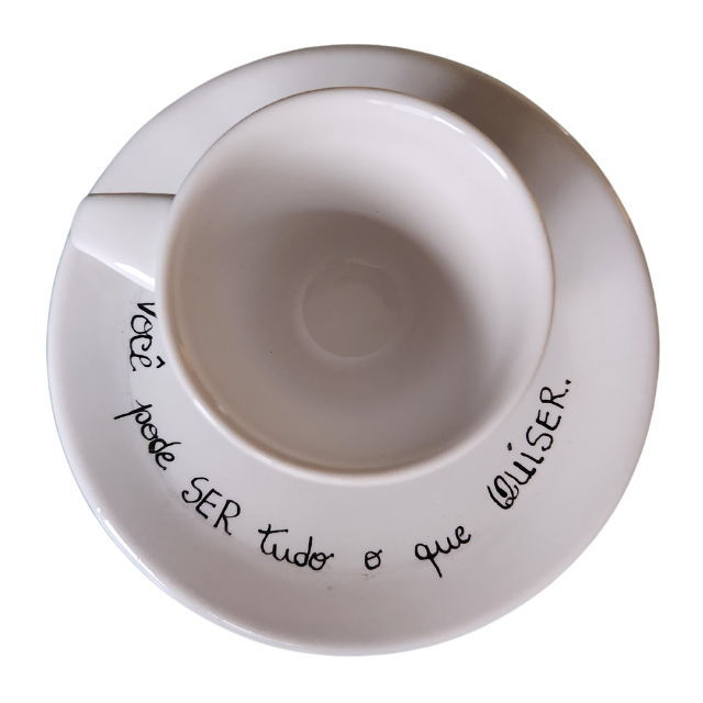 Xícara com Pires – Frida – Porcelana – “Você Pode Ser Tudo Que Quiser” – Café Expresso