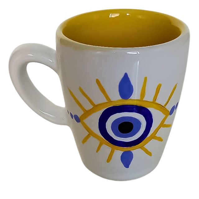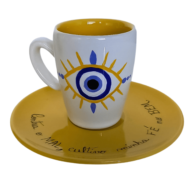 Xícara com Pires – Olho Grego “Contra o mal, cultivo minha fé no bem” – Café Expresso