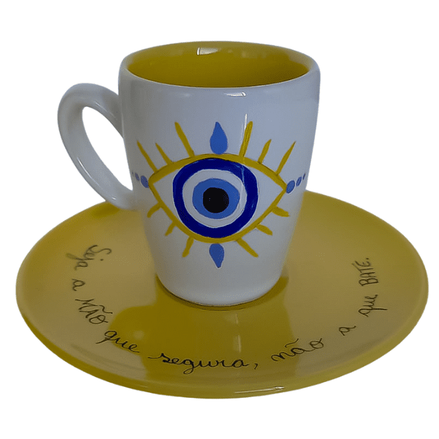 Xícara com Pires – Olho Grego – “Seja a mão que segura, não a que bate – Café Expresso